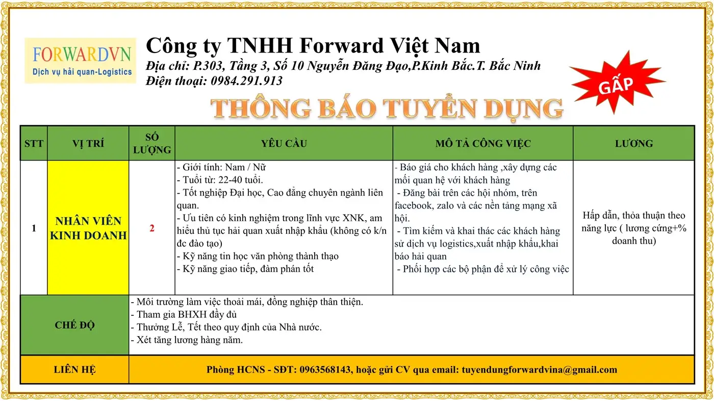 Việc làm Bắc Ninh - Bắc Giang miễn phí • Tuyển dụng gấp, đi làm ngay